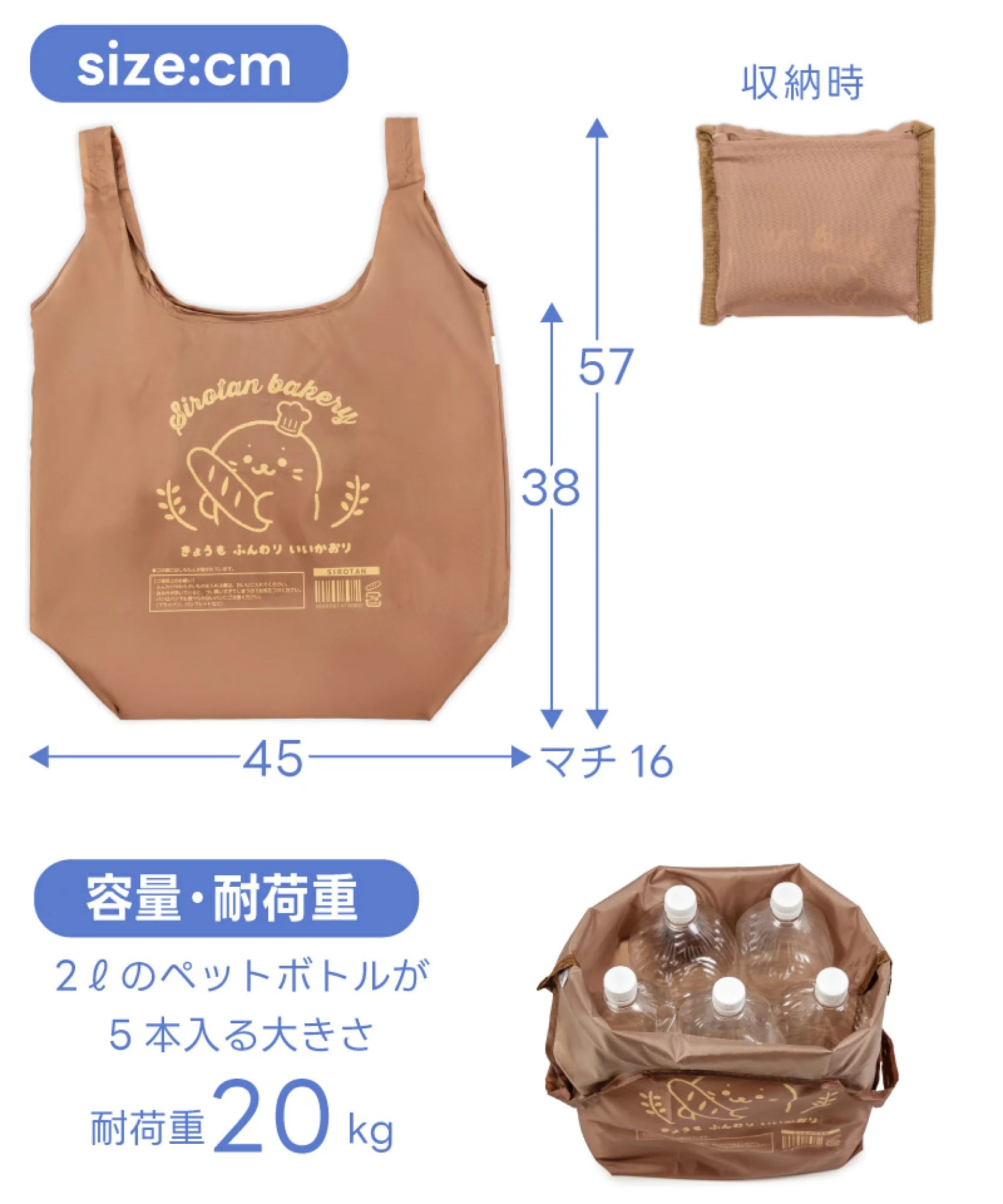 【Size】橫約45×縱38(不含把手) x邊16cm, 收納時:14×16cm