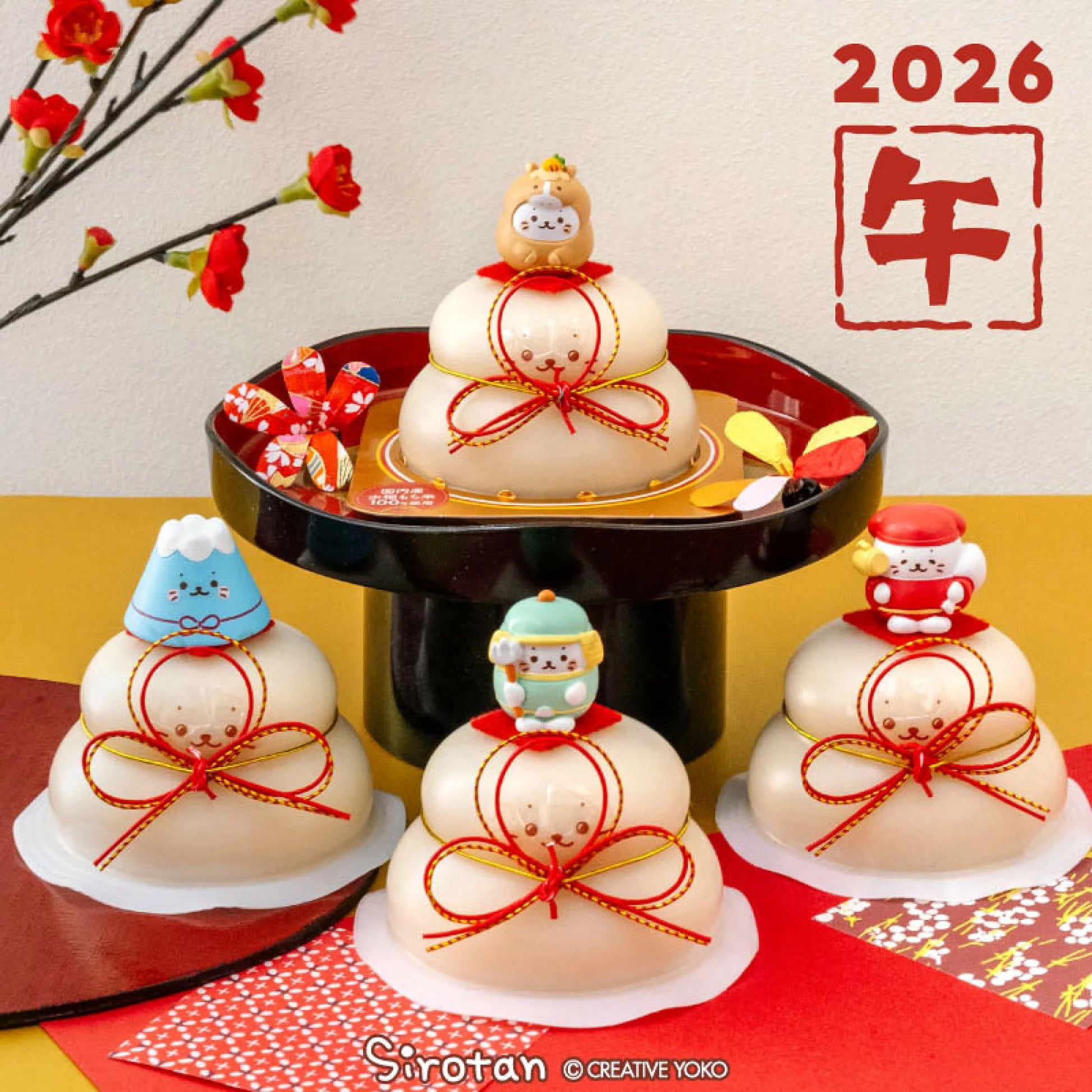 2026也和Sirotan 一起迎接吧♪ 除咗生肖吉祥物外,今年仲有毘沙門天Sirotan 、大黑天 Sirotan和富士山吉祥物登場👏🏻 年糕上的Sirotan公仔可以作單品裝飾!下面年糕可以食用,食用前請留意賞味期限啊!